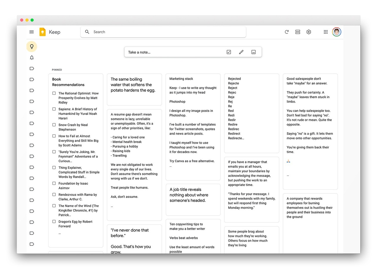 I’ve tried Evernote and OneNote, but Keep is faster to open. I can capture my ideas before I forget them.
